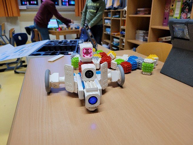 Seit dem Schuljahr 2021/22 hat die Grundschule Meitingen acht Cubroid Baukästen. Das sind einfach programmierbare Bausätze, mit denen die Kinder die Welt der Technologie erkunden und sich mit der Programmierung vertraut machen können.