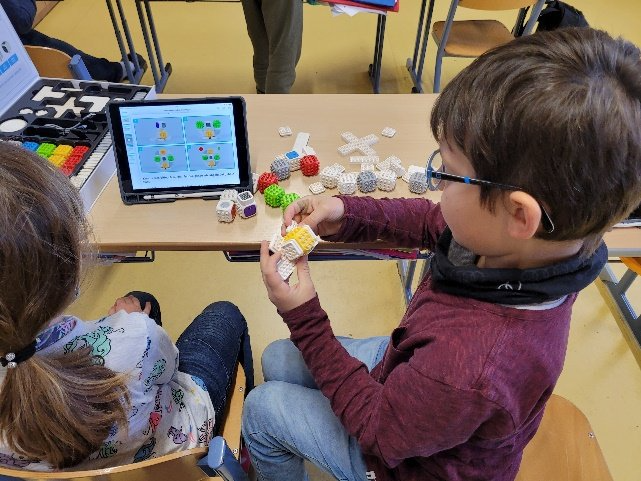 Jeder Baukasten enthält größere, Lego kompatible Bausteine und Verbindungsteile sowie Rollen und Gleiter, die zusammen mit den Modulblöcken zu ziemlich allem zusammengebaut werden können - vom Roboter, über verschiedene Fahrzeuge bis hin zu tollen Maschinen. Mithilfe verschiedener Sensoren und Aktoren können die gebauten „Roboter“ so programmiert werden, dass sie sich in bestimmte Richtungen bewegen, einen Sound oder Lichtzeichen von sich geben. Die verschiedenen Aktionen können die Schüler durch kindgerechte Programmierung miteinander verknüpfen. Dazu werden die an der Schule vorhandenen Tablets mit zwei verschieden Apps verwendet. Mit der Einsteiger-App und einfach gehaltenen, bebilderten Anleitungen haben die Kinder bereits nach wenigen Minuten erste Erfolgserlebnisse.