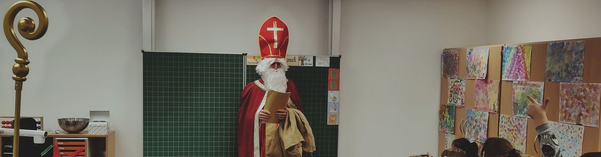 Die ersten Klassen machten große Augen, als plötzlich der echte Bischof Nikolaus vor ihrer Klassenzimmertür stand. Selbstverständlich wurde er mit auswendiggelernten Gedichten und Liedern begrüßt.